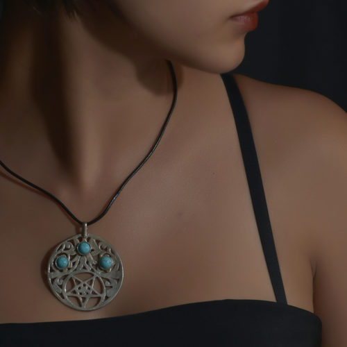 Pendentif aux allures traditionnelles avec son étoile et sa turquoise.