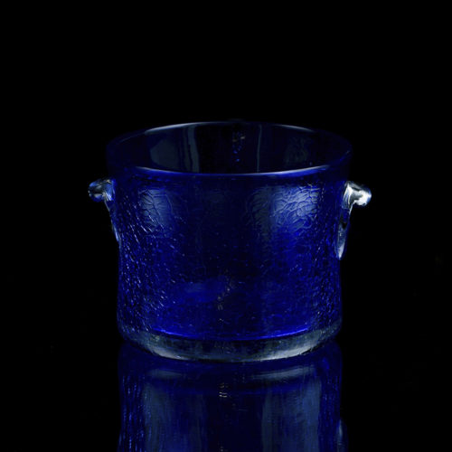 Mini seau à glaçon en verre soufflé bleu effet craquelé