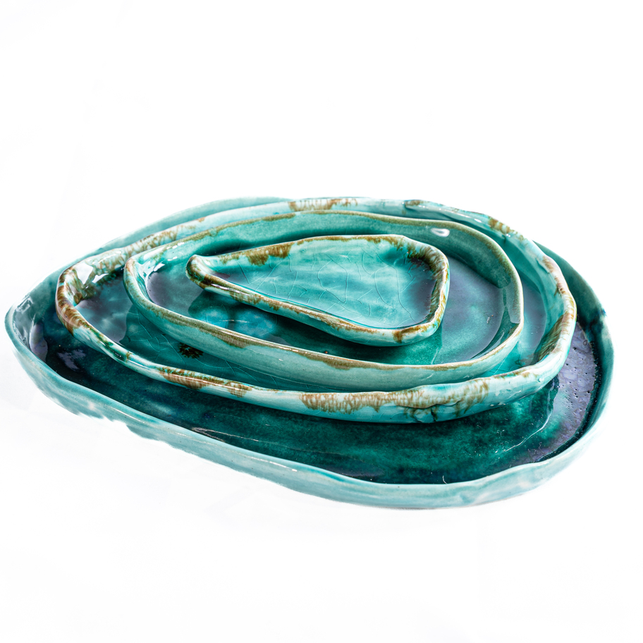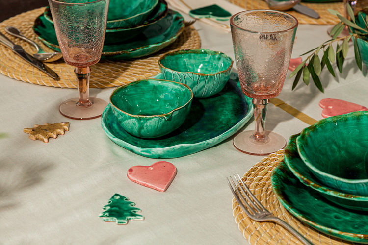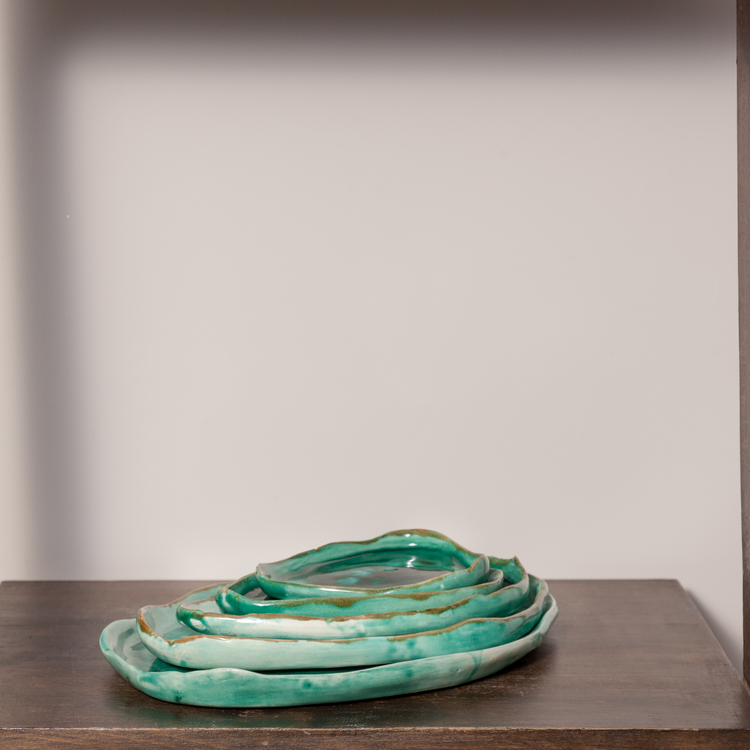 Inspirée par la nature, la vaisselle artisanale de notre collection Studio Green ne vous laissera pas indifférent. Les feuilles et branchages, la verdure, les racines, la terre ...tels sont les thèmes développés par Sonia Ben Slimane, céramiste designer au sein de son atelier de la Marsa. Ajouter à cela la délicatesse de son façonnage unique, son choix percutant des couleurs issues de ses propres mélanges et vous obtiendrez des créations d'une grande délicatesse qui sauront trouver leur place sur vos plus belles tables.